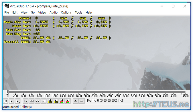 - Overall PSNR은 AviSynth+에 내장된 Compare() 필터를 사용해서 확인함