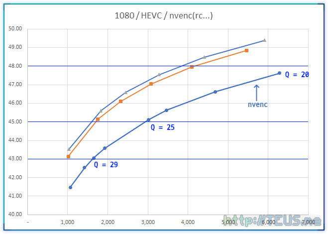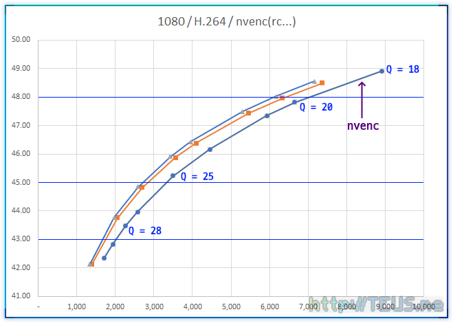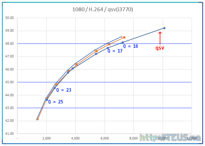 즉, 전체적으로는 qsv가 좀 더 높은 품질을 달성하지만, Q 값이 아주 높은 경우엔 nvenc가 더 높은 결과를 볼 수 있다.