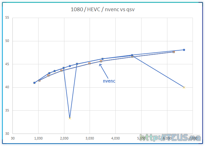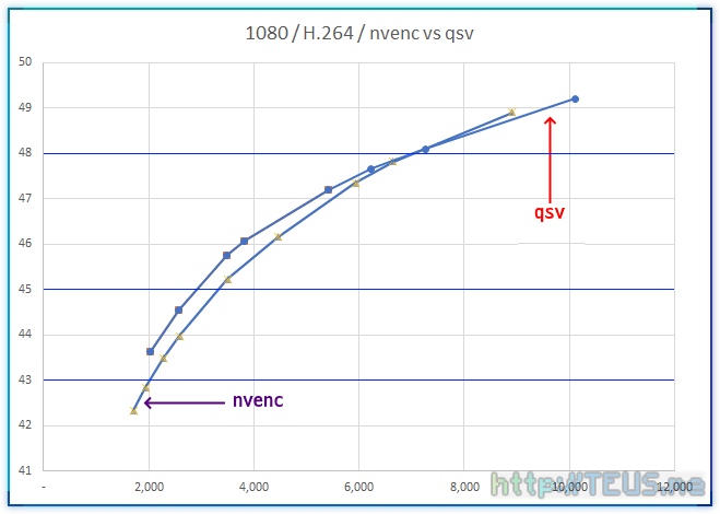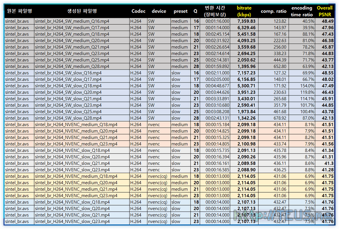 nvenc와 qsv의 결과만 비교해보면 다음과 같은 결과를 보여준다.