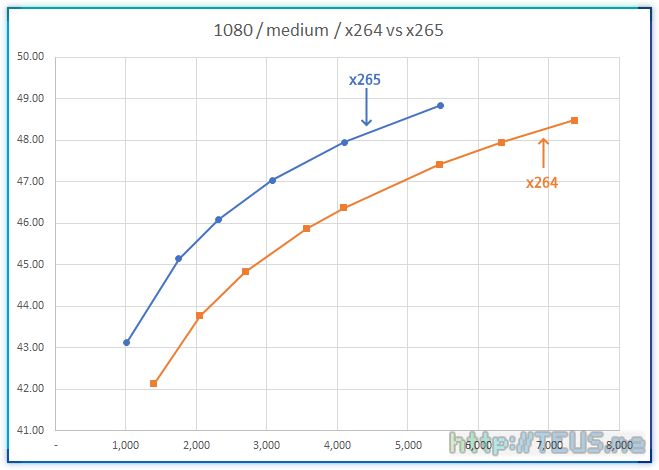 - x265는 x264에 비해 동일 화질 기준으로 파일 크기가 65% 정도를 달성함