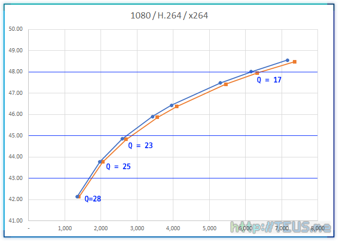 우선 확인해야 할 지점은 x264가 가이드에서 얘기한 Q(CRF)로 인코딩시 어떤 정도의 PSNR을 보여주는지 하는 점이다.