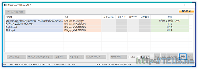 MKV, AVI 등과 같은 과정으로 처리하며, 필요시 재인코딩도 실시함