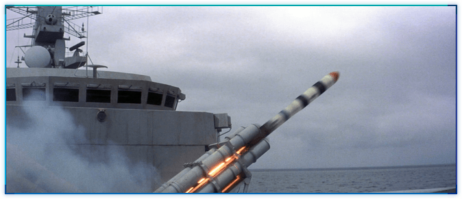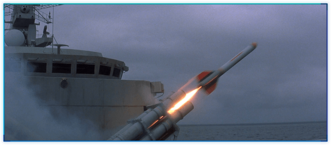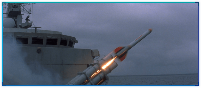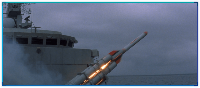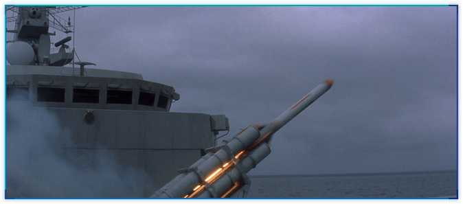 사실, TND 오프닝에서 테러리스트들 장사하는 곳으로 미사일을 발사하는 장면을 그대로 사용한 것입니다. 배의 구조물, 구름 등을 유심히 살펴보시기 바랍니다. (아마도 컴퓨터로) 다시 그리다보니 미사일의 크기가 똑같습니다. ^^;;;