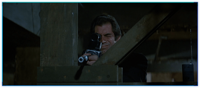 LTK에서 본드는 산체스를 라이플로 저격하려고 하지만 실패합니다.