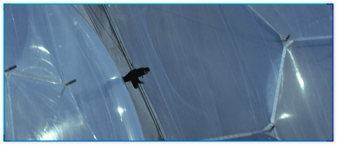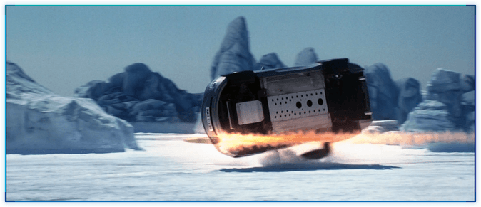 TLD에서는 본드카인 애스턴 마틴에 눈 위를 달릴 수 있도록 스키가 달려있었는데, 이 스키는 나무 사이를 지나갈 때 나무에 걸려 떨어졌습니다. DAD에서는 구스타프의 무지하게 빠른 자동차(이걸 차라고 해야 하나요? 아무튼…)에 스키가 달려있는데, 본드가 타고가면서 역시 나무에 걸려 스키가 떨어집니다.