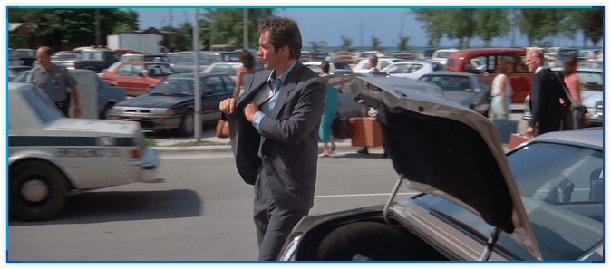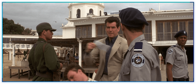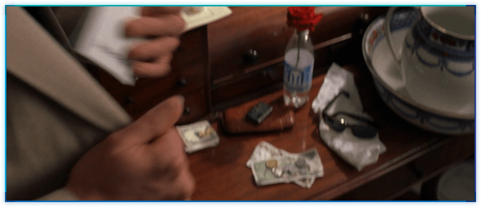 아주 재미있는 오마쥬(?)입니다. LTK에서 제임스 본드는 비행기 티켓을 오른쪽 안주머니에 넣고나서 직원 앞에서는 왼쪽 안주머니에서 꺼냅니다.