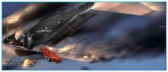 DAD에서는 구스타프(문 대령)의 고급차 컬렉션이 수송기 뒤쪽에 고정되어있다가 떨어집니다. (네, 문 대령의 자동차 수집은 이 장면을 위한 설정입니다)