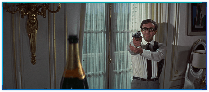 8. 에블린 트램블(제임스 본드)이 총으로 샴페인 뚜껑을 따는 장면이 나옵니다.