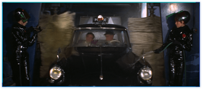 7. 에블린 트램블(제임스 본드)이 마티스로부터 임무를 시달받을 때 누가 엿듣는 것을 방지하기 위해 세차장 안에서 시달받습니다. [뷰투어킬]에서는 티벳 경이 세차장에서 살해당합니다.