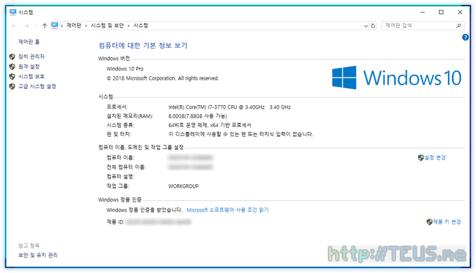 실로 오랜만에 윈도우도 완전히 새로 갈아엎고 띄워본 시스템 정보는 아래와 같다.