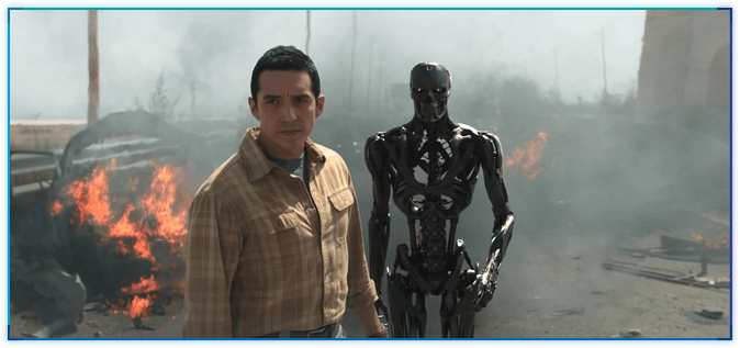 그런데, 기존 시리즈에서 T-800 또는 T-1000을 이어받은 Rev-9(가브리엘 루나)부터는 뭔가 아쉽다[각주:2]. 전작의 터미네이터와는 조금 다른 능력들을 보여주려고 하는데, 사실상 뭐가 다른지 모르겠다.
