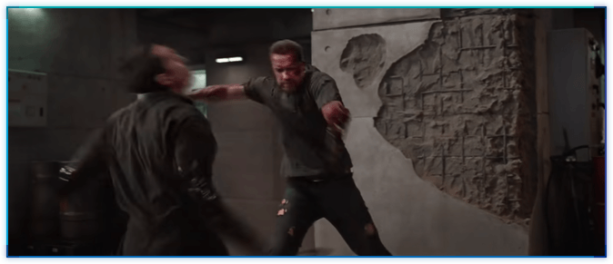 터미네이터 Rev-9과 백중지세의 전투력을 보여주는데, 둘의 싸우는 스타일이 다르다는 점이 눈에 확 들어온다.