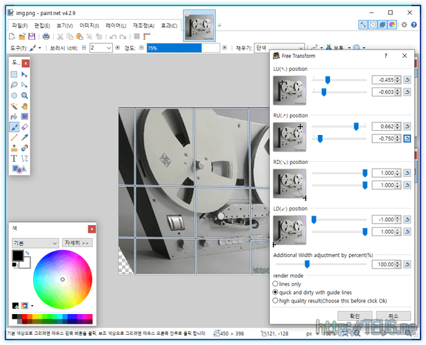 그런데, 자유 변형(Free Transform)의 경우 효과적인 대체 프로그램을 찾지 못했다.