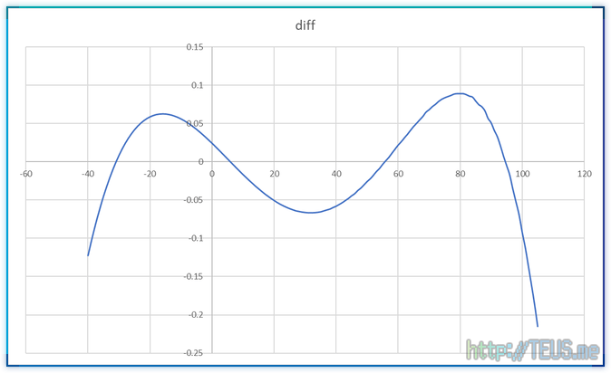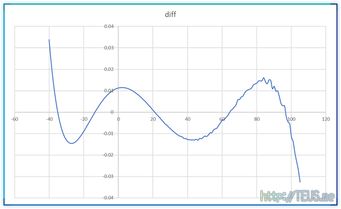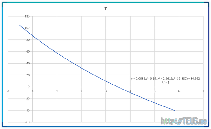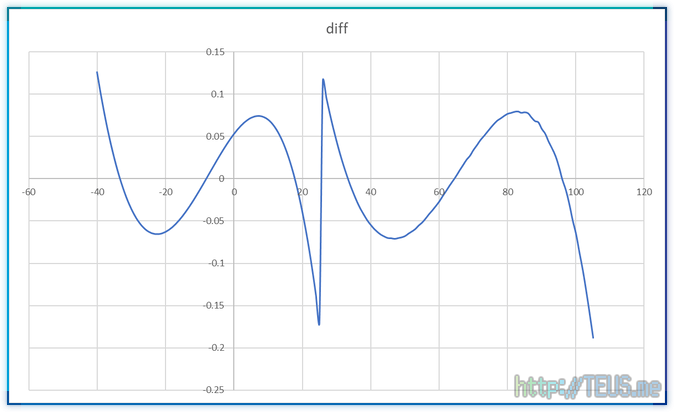 출력값을 적절한 값(25℃)에서 잘라서 두 개의 추세선 식(2차 방정식)을 추출해봤다.
