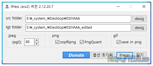이 프로그램은 JPEG/PNG/GIF 파일들을 주어진 옵션에 따라 압축해준다.