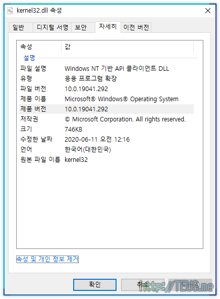 실제로 이 파일의 정보를 들여다보면 아래와 같이 10.0.19041.292로 나온다.