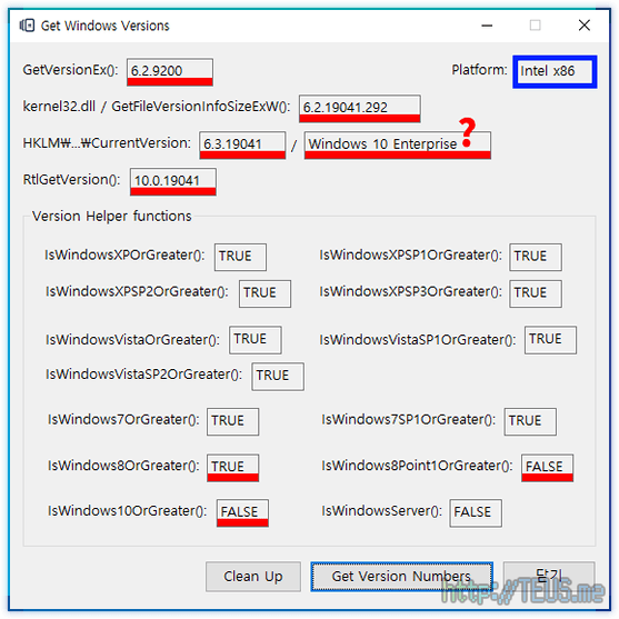 결국, 윈도우의 버전 번호를 있는 그대로 보여주는 함수는 RtlGetVersion() 하나밖에 없다는 뜻이다.