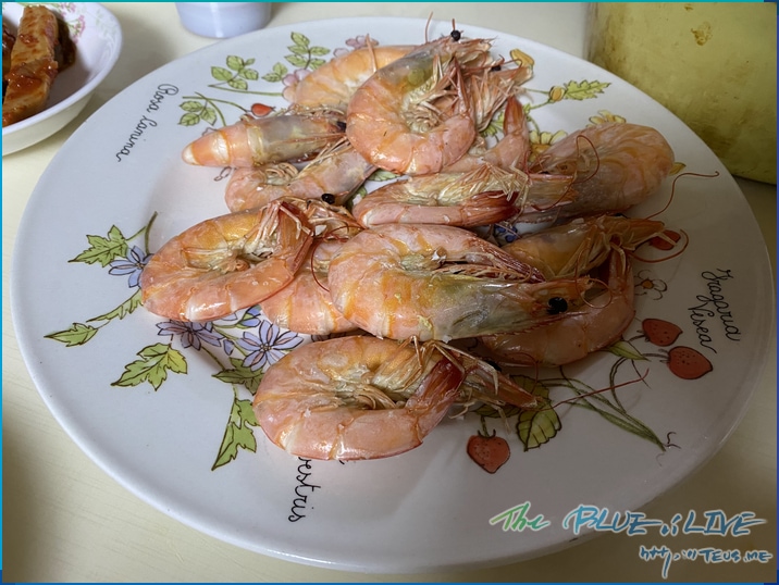 살아 있는 새우를 요리하는 법을 따로 익히지 못해 그냥 물로 깨끗이 씻어 바로 요리해버렸다.