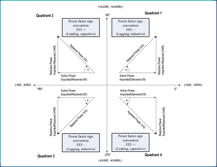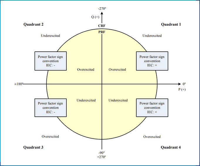국제전기협회(IEC)에서 사용하는 역률의 부호는 위에서 말한 설명과 수학적 이론에 부합한다.