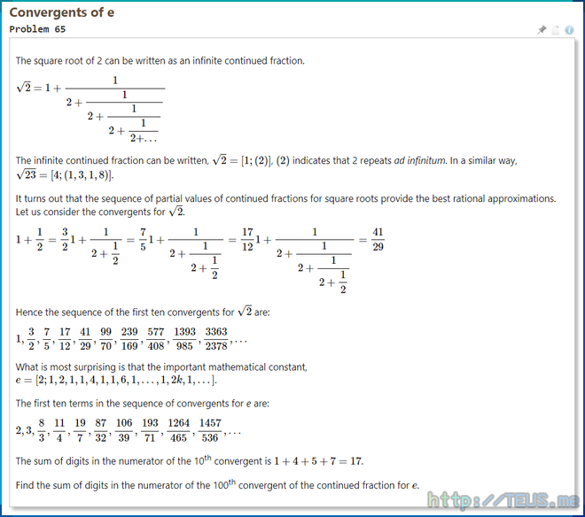 e = [2;1,2,1,1,4,1,1,6,1,1,8,1,1,10,1,1,12,1,1,14,1,1,16,1,1,18,1,1,20,1,1,22,1,1,24,1,1,26,1,1,28,1,1,30,1,1,32,1,1,34,1,1,36,1,1,38,1,1,40,1,1,42,1,1,44,1,1,46,1,1,48,1,1,50,1,1,52,1,1,54,1,1,56,1,1,58,1,1,60]