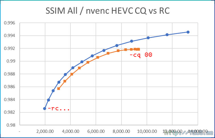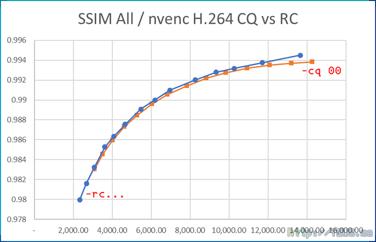 nvenc에서 우선 확인해봐야 할 점은 공식(?) 품질 옵션인 cq와 우회로 옵션인 rc이 같은지 여부다.