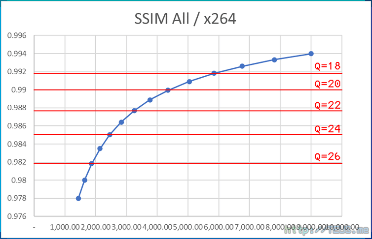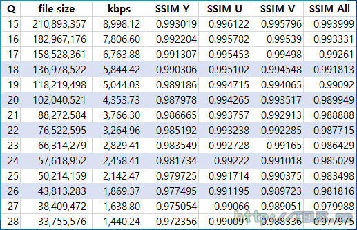 각 인코더로 인코딩한 결과가 아래 표의 SSIM All 값과 유사한 옵션을 찾는 것이 테스트의 목표이다.