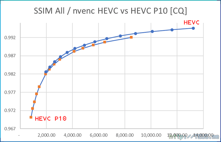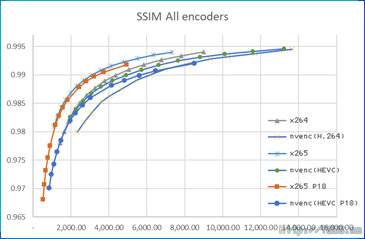또한, nvenc HEVC 인코더가 많이 향상됐지만, 아직 x264를 능가하진 못했다는 점도 눈에 띈다.