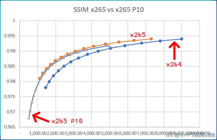 예전 테스트에선 8비트와 10비트의 파일 크기를 동일하다고 봤는데, SSIM 기준으로는 그렇지 않다.