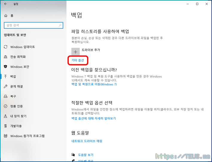 설정에서 백업을 찾아가서 기타 옵션 선택.