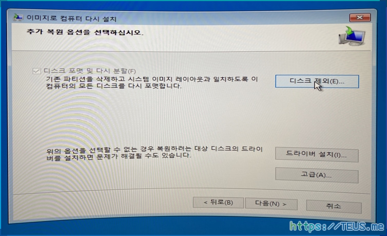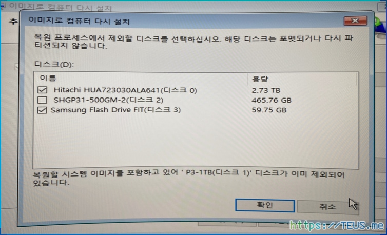 필요하다면 복원하지 않을 디스크를 선택한다.