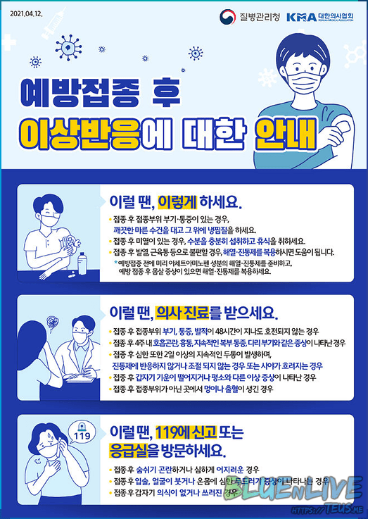 골자는 평소에 겪는 백신 반응이 아니라면 무조건 119 불러 큰 병원 가야 됨.