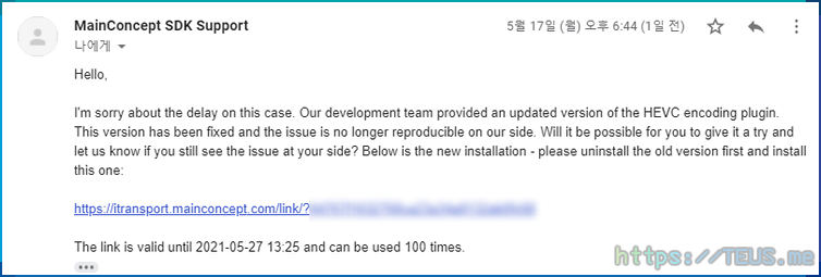 처음 MainConcept HEVC 인코더를 구매했던 것이 2월 15일이었으니, 무려 3개월의 시간이 흘렀다.