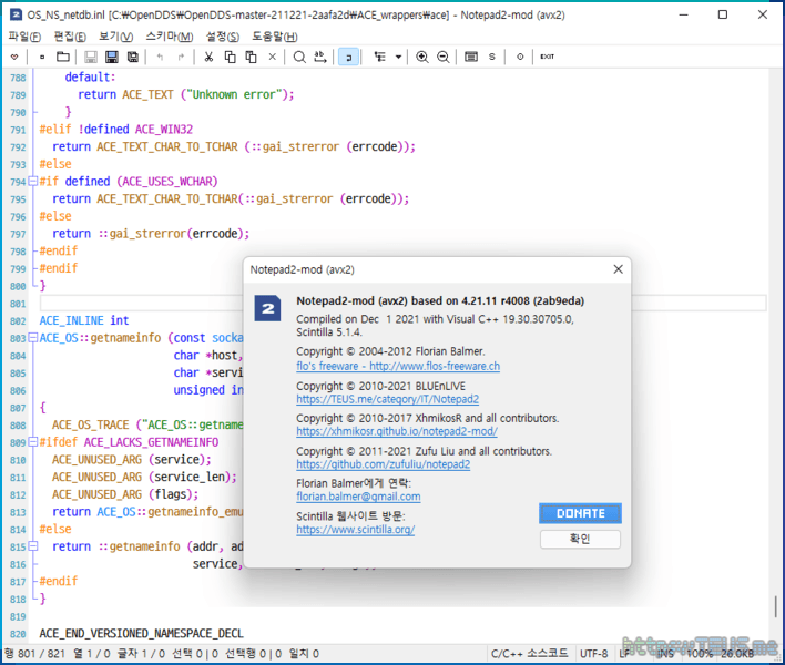 - Scintilla 라이브러리를 5.1.4로 업데이트(관련 링크)