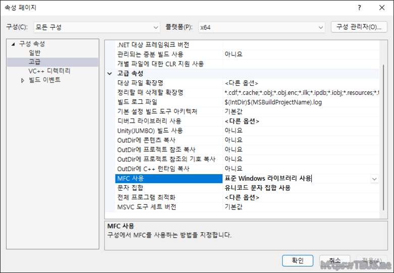 일단은 정적 라이브러리에서 MFC 사용 옵션은 선택하면 안 된다고 봐야 한다.