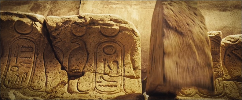 원작 소설에서는 바위가 굴러 떨어지는 장면이 아부심벨 대신전에서 이루어지기 때문이다.
