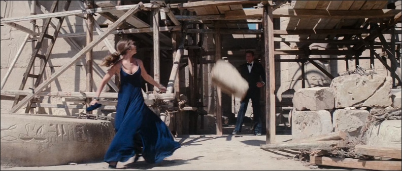 1년 전 제임스 본드와 아마소바 소령이 바로 그 카르나크 신전에서 네모난 돌덩어리가 떨어져서 죽을 뻔 했었던 것처럼.