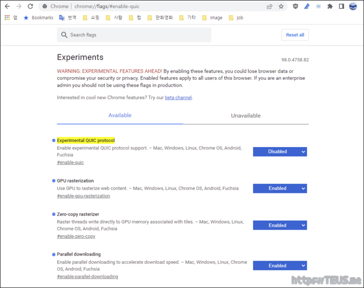 HTTP 3.0(QUIC)이 정식으로 지원되고, 안정화가 이루어지기 전까지는 잠시 꺼두어도 괜찮을 것 같다.