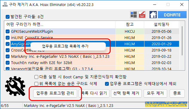 설치 프로그램 목록에서 이러한 백해무익한 쓰레기들을 찾아서 한방에 제거해주는 프로그램.