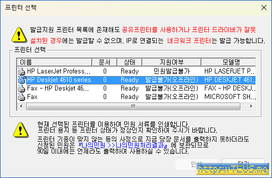 프로그램은 그냥 홈페이지에서 다운 받아 실행하면 되고, 인쇄할 때 프린터만 잘 지정하면 된다.