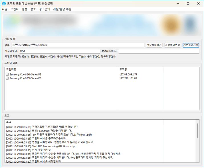 자세한 설명은 사용설명서에 나와있지만, 사실 대부분의 경우 생성된 프린터로 인쇄만 하면 내 문서 폴더에 MOP라는 이름으로 생성되는 매우 간단명료한 인터페이스로 구성되어 있다.