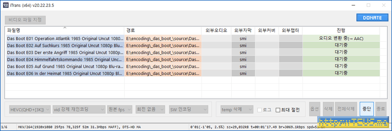 MKV, AVI 등과 같은 과정으로 처리하며, 필요시 재인코딩도 실시함