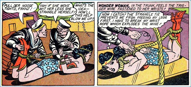 이점은 초기 원더우먼 코믹스들을 상기해보면 중요한 지점인데, 원더우먼 캐릭터는 성적 판타지를 반영한 그림들이 꽤 있었다.