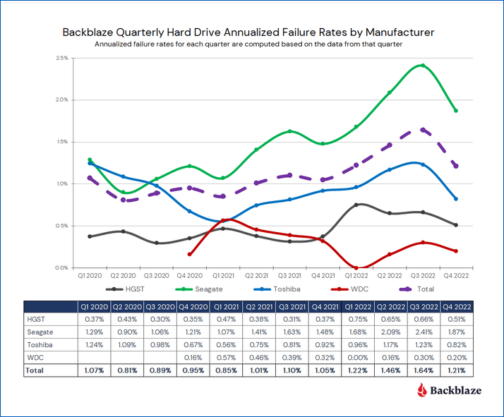 애초에 이 쪽 회사 제품은 손도 대지 않는 내가 승자라는 생각을 하며 backblaze에서 올 초에 발표한 자료를 확인해봤다.