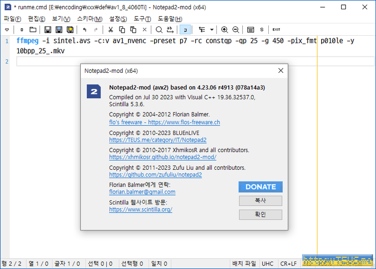 - Scintilla를 5.3.6으로 업데이트 (관련 링크)