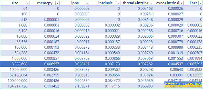 그런데, 스택 오버플로우에서 재미있는 글타래(faster alternative to memcpy?)를 발견했다.