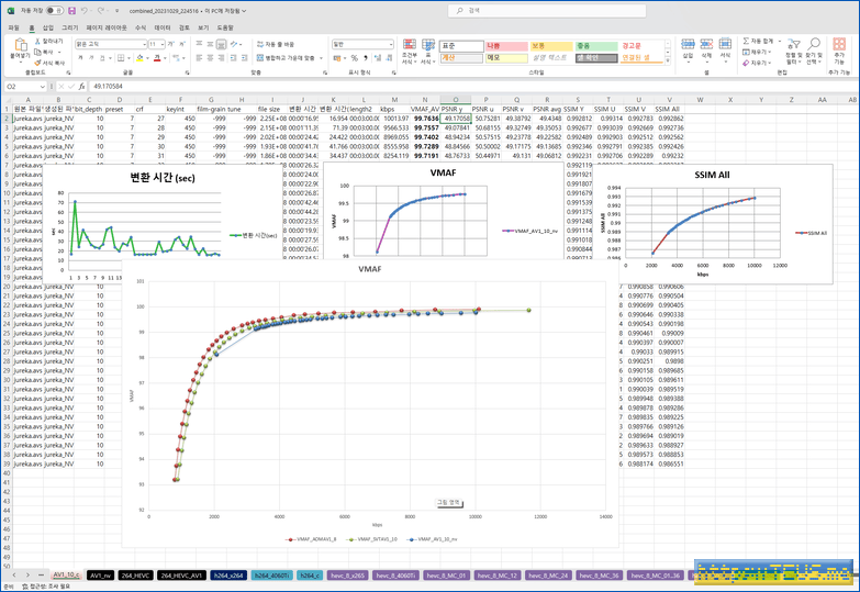 기존에 사용하던 몇 가지 설정이 있었는데, 이 설정값 역시 H.264와 유사하게 SSIM과 관계가 역전되는 결과를 보여준다.
