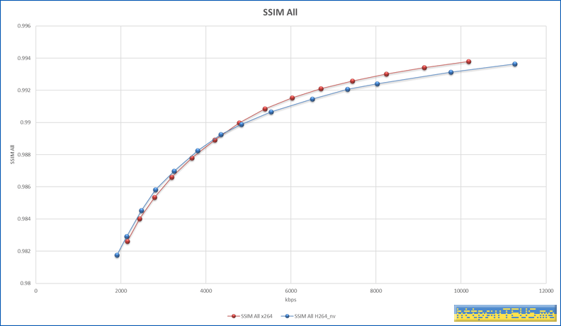 SSIM은 아래 그래프처럼 서로 비슷하면서도 어떤 지점부터는 x264가 높게 나온다.